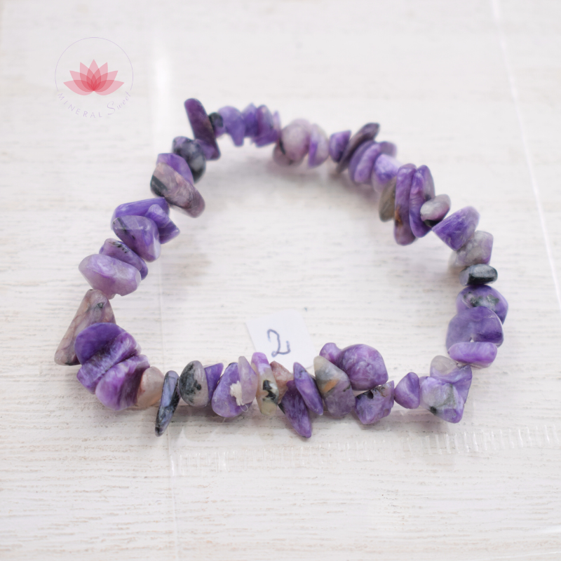 Bracelet de Charoïte, petites perles "chips" ou autrement appelées "baroques"