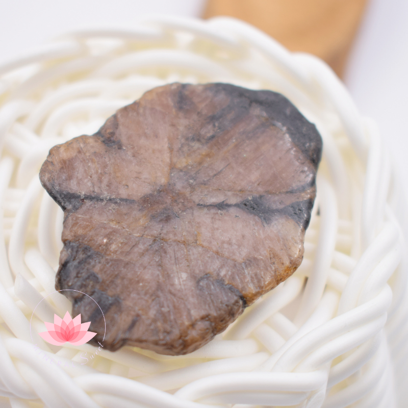 La Chiastolite est un minéral du groupe des silicates sous-groupe des nésosubsilicates, de formule Al2SiO5 avec des traces de Fe; Mn; Ti; Cu; Mg; K et inclusions de Ca .