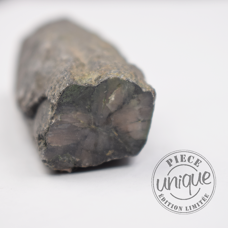 La Chiastolite est un minéral du groupe des silicates sous-groupe des nésosubsilicates, de formule Al2SiO5 avec des traces de Fe; Mn; Ti; Cu; Mg; K et inclusions de Ca .