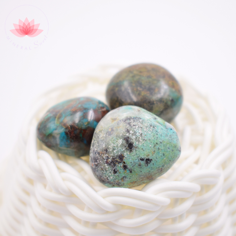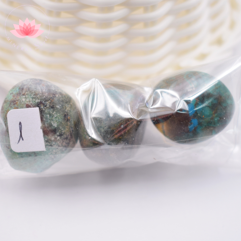Lot de 3 pierres roulées de Chrysocolle du Pérou, de très belle qualité