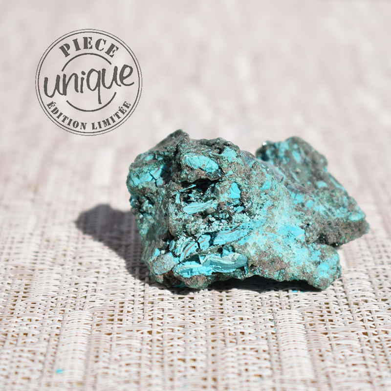 Le Chrysocolle est une silicate d'hydroxyde de cuivre, sa formule chimique est Cu,Al)2H2Si2O5(OH)4·nH2O. Elle est de couleur bleu, bleu-vert, vert .