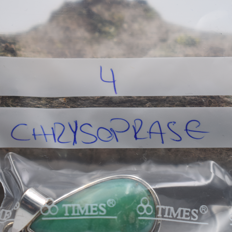 La chrysoprase est une variété gemme de calcédoine nickélifère. Sa formule chimique est le dioxyde de Silicium, SiO2. elle peut contenir des micro-inclusions de minéraux du nickel tel que la kerolite, népouite, pimélite. La couleur varie du vert pomme au vert foncé, toutefois dans ce cas il s'agit plutôt de quartz prase.