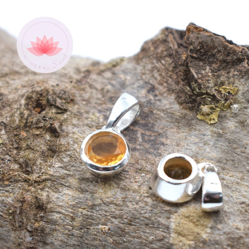 Petits pendentifs ronds en Citrine facetté et serti argent de 925