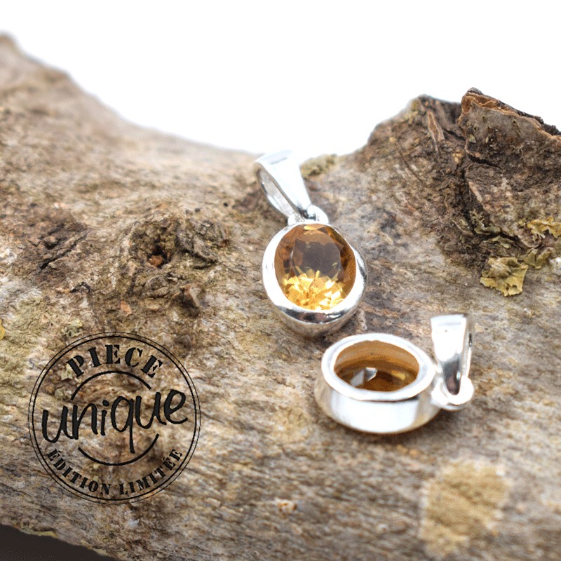 Pendentif Citrine oval facetté serti argent de 925.