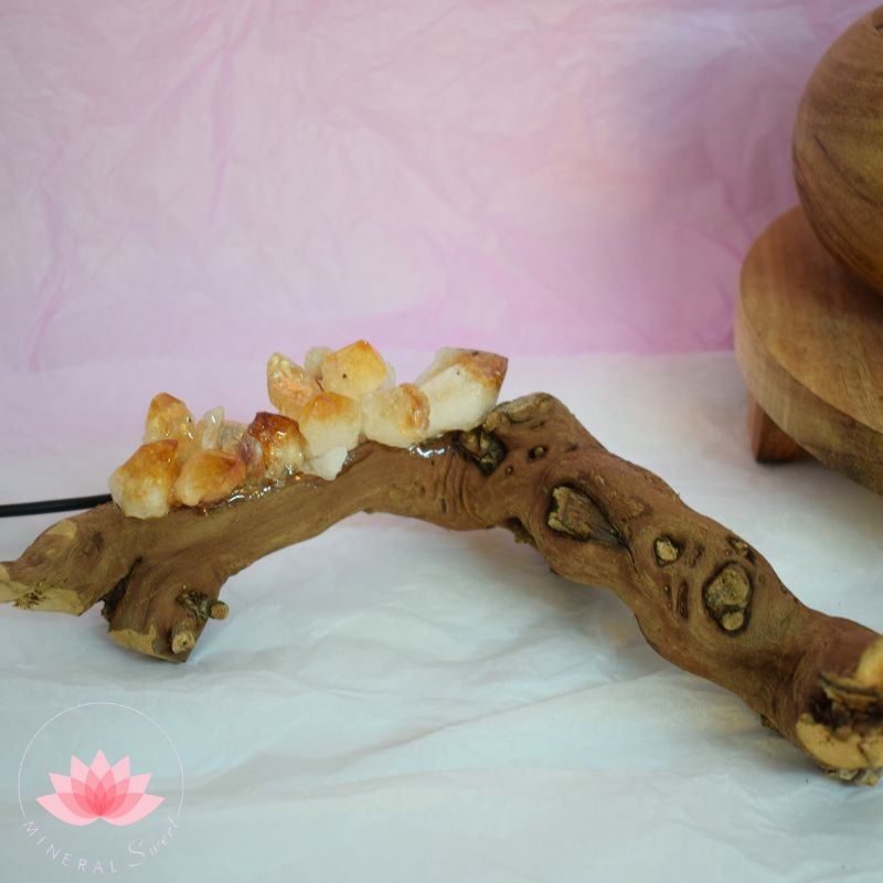 Petite lampe en bois naturel et pointes naturelles de Citrine.