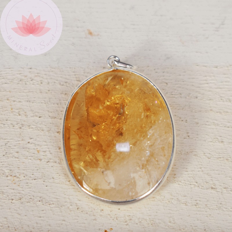 Pendentif oval Citrine et argent