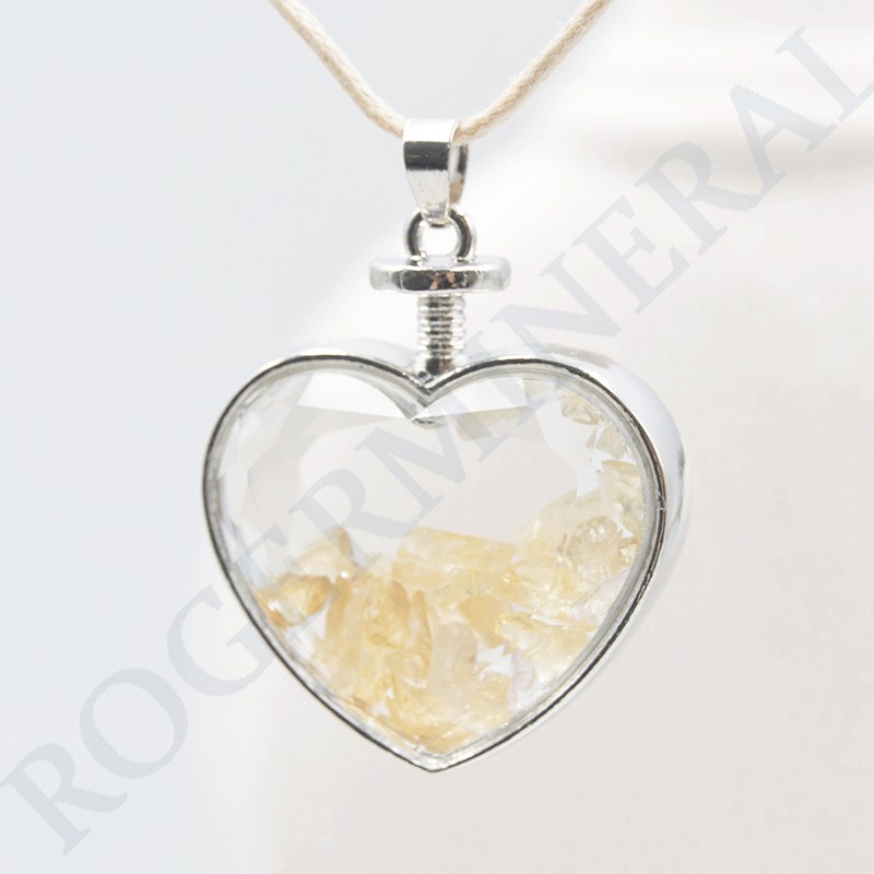 Joli pendentif de coeur en verre avec petites pierres de Citrine.