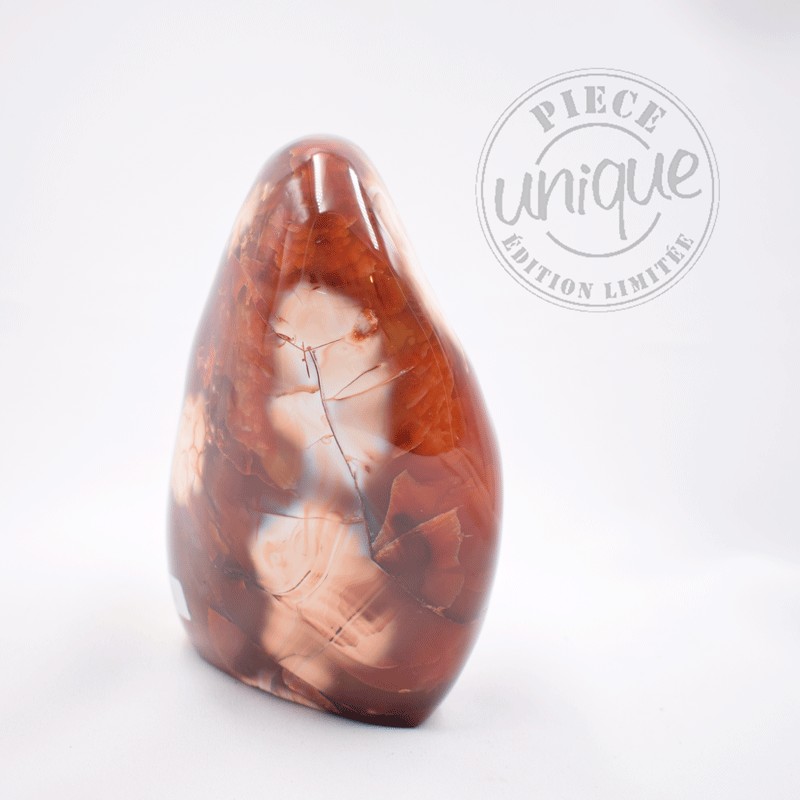 De par sa couleur elle est une pierre qui engendre le dynamisme, elle encourage à aller de l'avant, cette couleur est tonifiante, communicative, la cornaline est une pierre féminine, les femmes se sentent bien avec elle. on a envie d'avancer avec plus de confiance, de détermination. cette pierre va très bien sur le chakra 2, le chakra sacré.