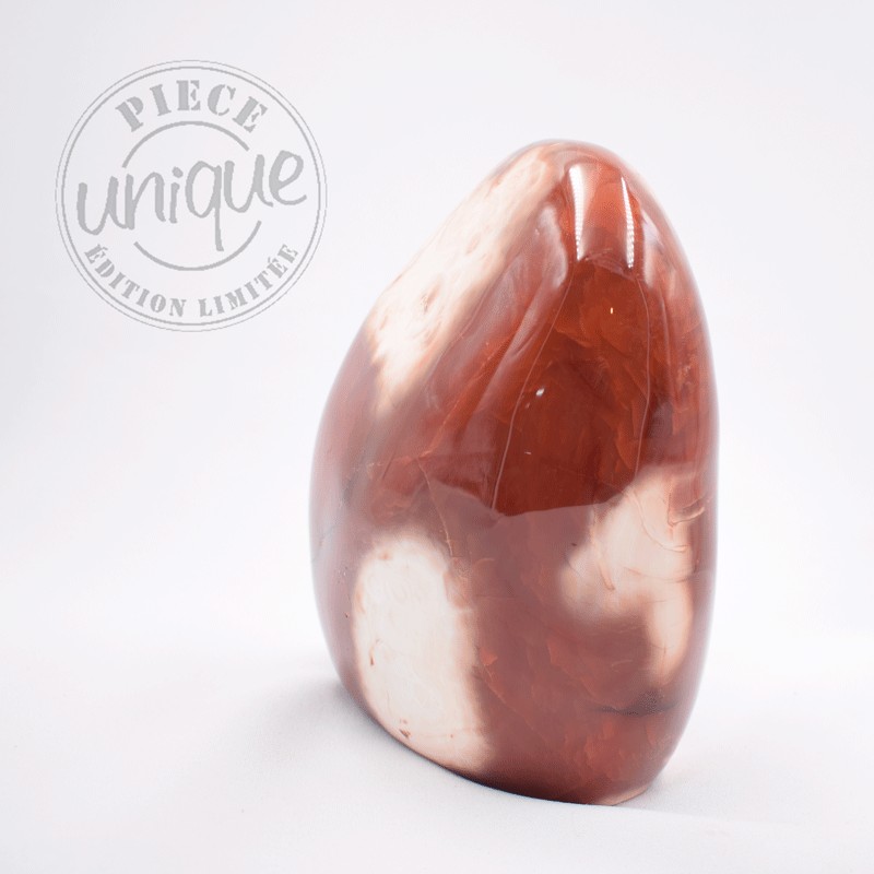 Elle est une variété de calcédoine rouge. Sa couleur peut être rouge orangé - rouge sombre. elle peut être opaque à translucide.