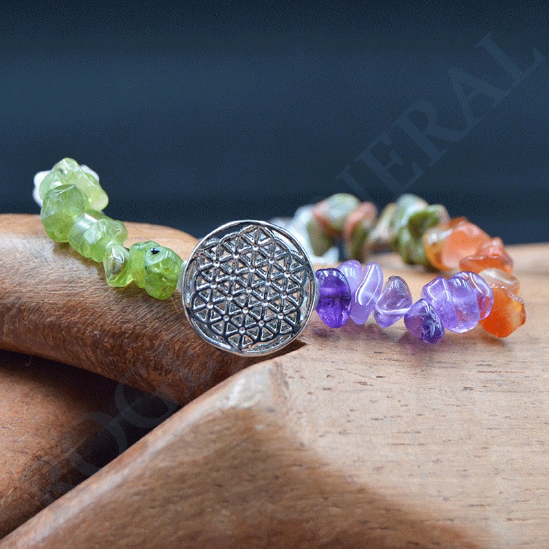 Bracelet 7 Chakkras baroque avec Fleur de Vie