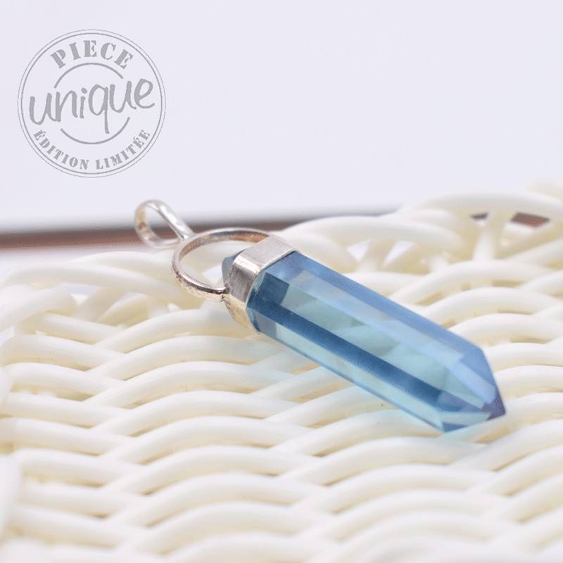 Pendentif en Quartz Aura bleu serti argent.