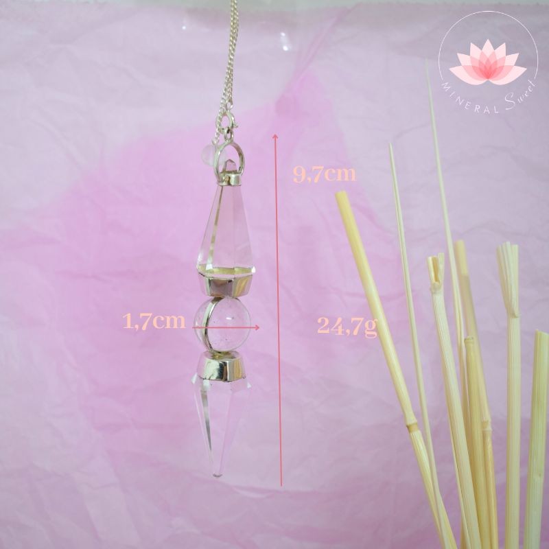Pendule en Cristal de Roche, deux pointes et une sphère, sertissage argent.