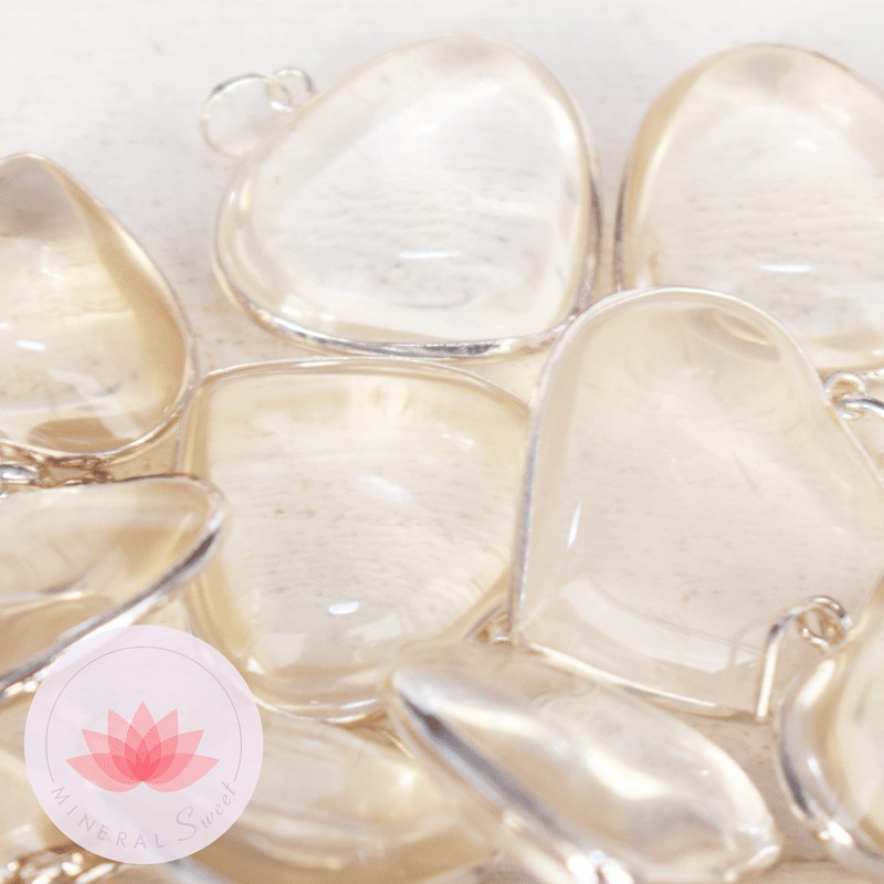 Très beau pendentif en coeur de Cristal de roche , serti argent.