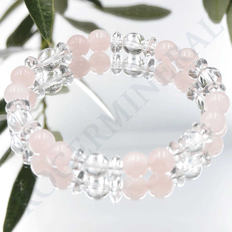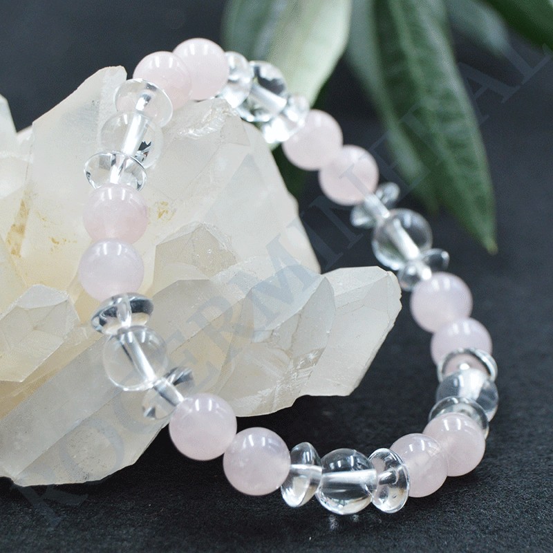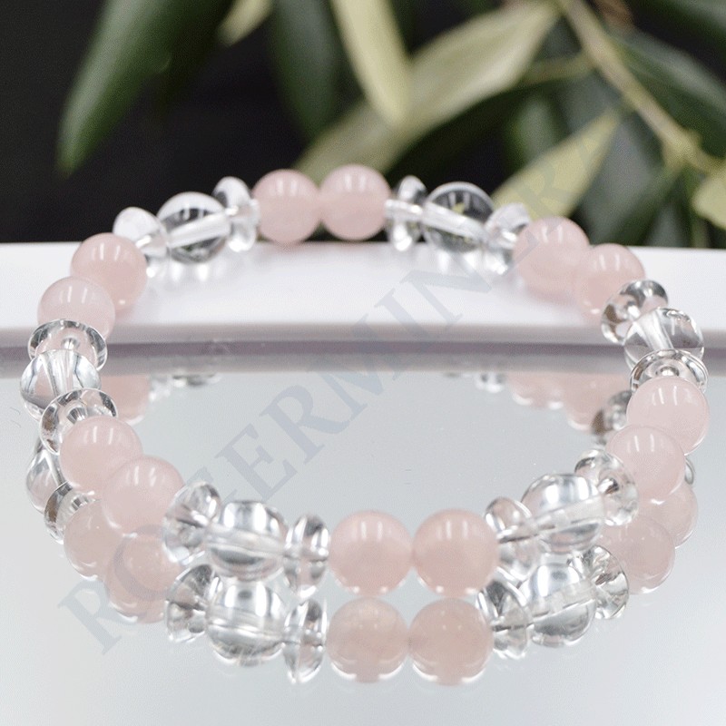 Bracelet de Quartz Rose et Cristal de Roche.