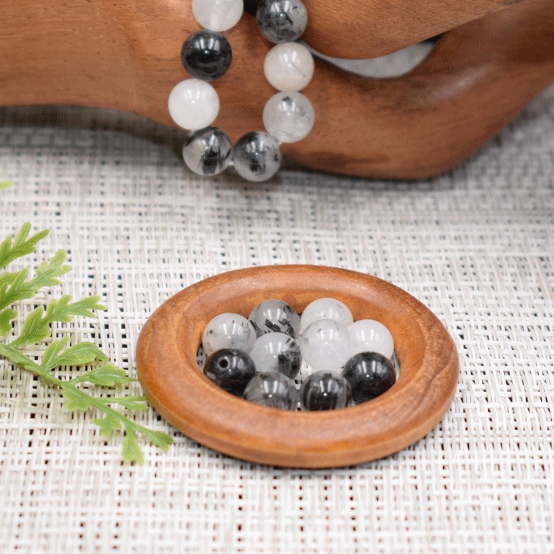 Cristal de roche avec inclusion de Tourmaline noire naturelle perles 8mm prix dégressifs
