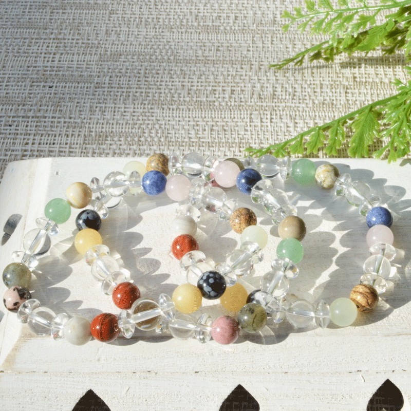Bracelet avec des differentes pierres et Cristal de Roche.