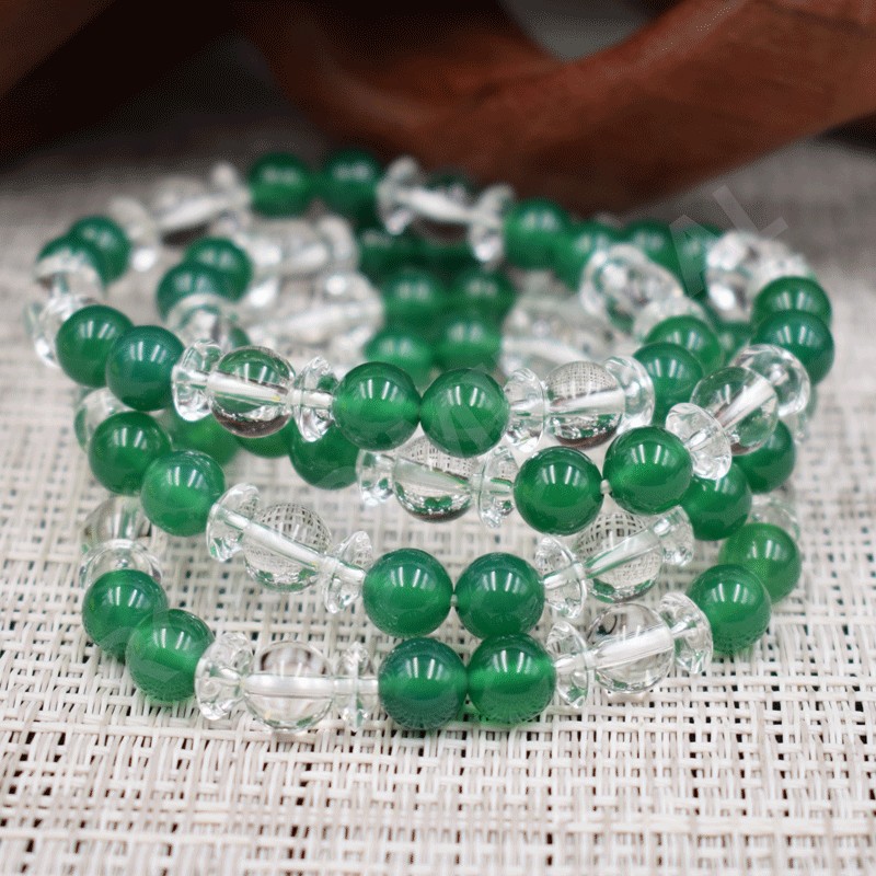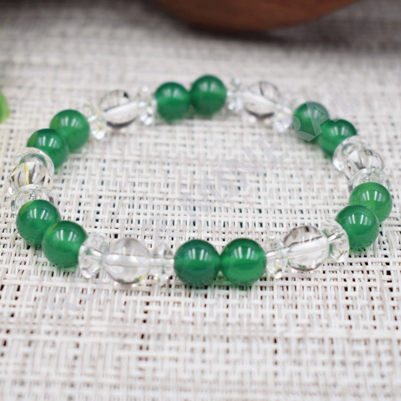 Bracelet Cristal de roche et Quartz teinté verd
