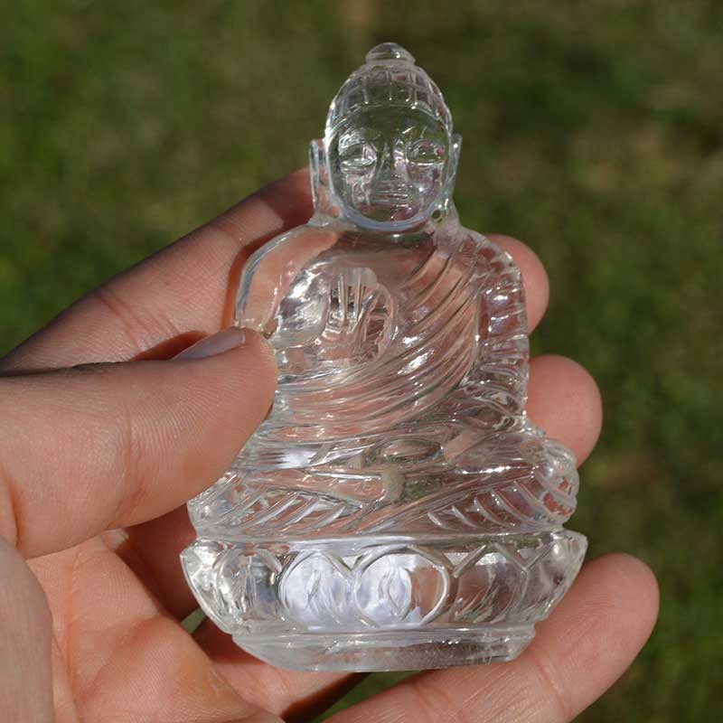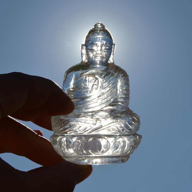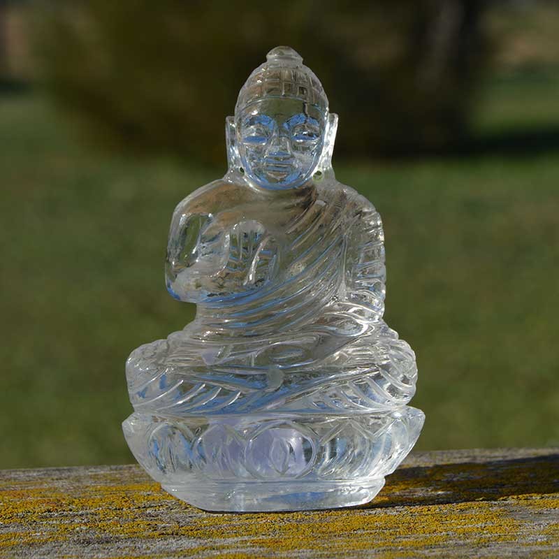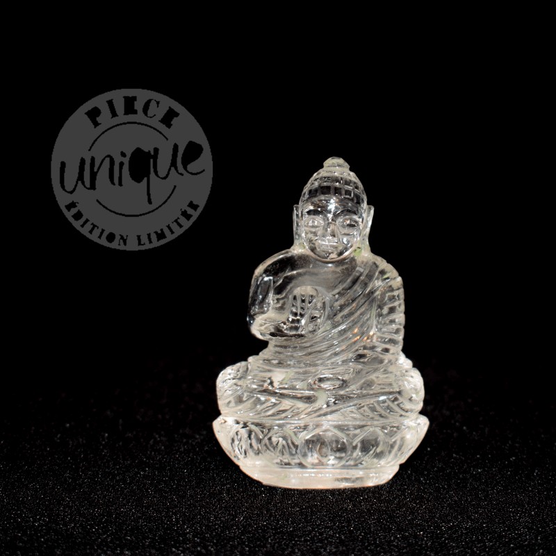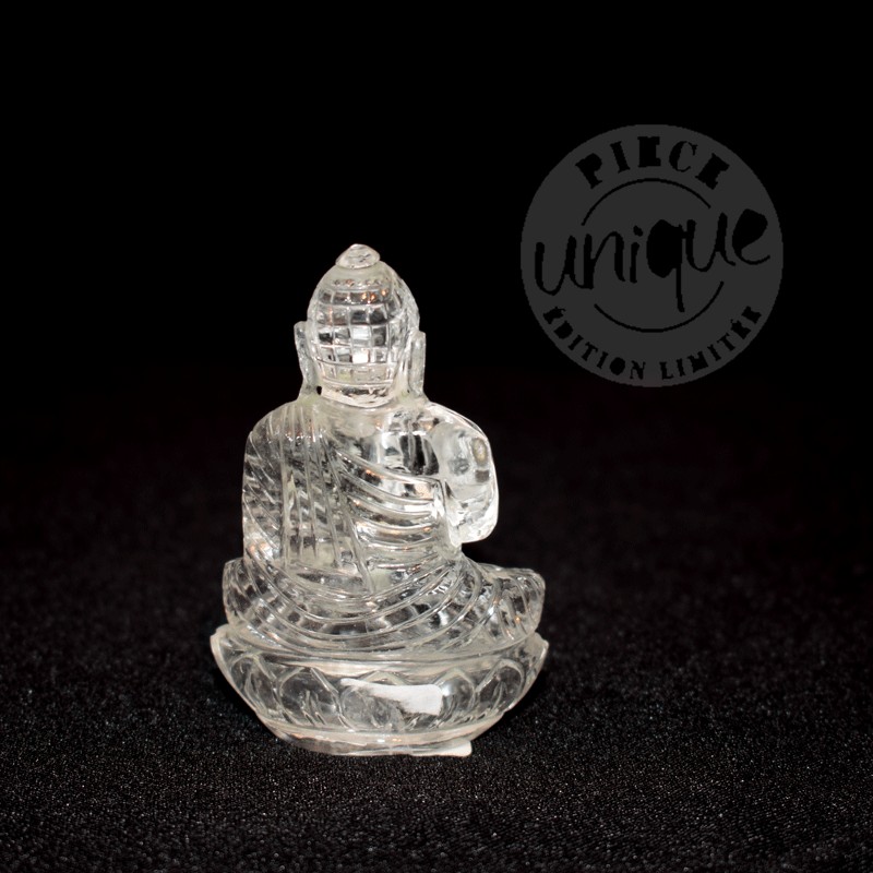 Bouddha sculpté à la main de Cristal de Roche, qualité exceptionnelle.