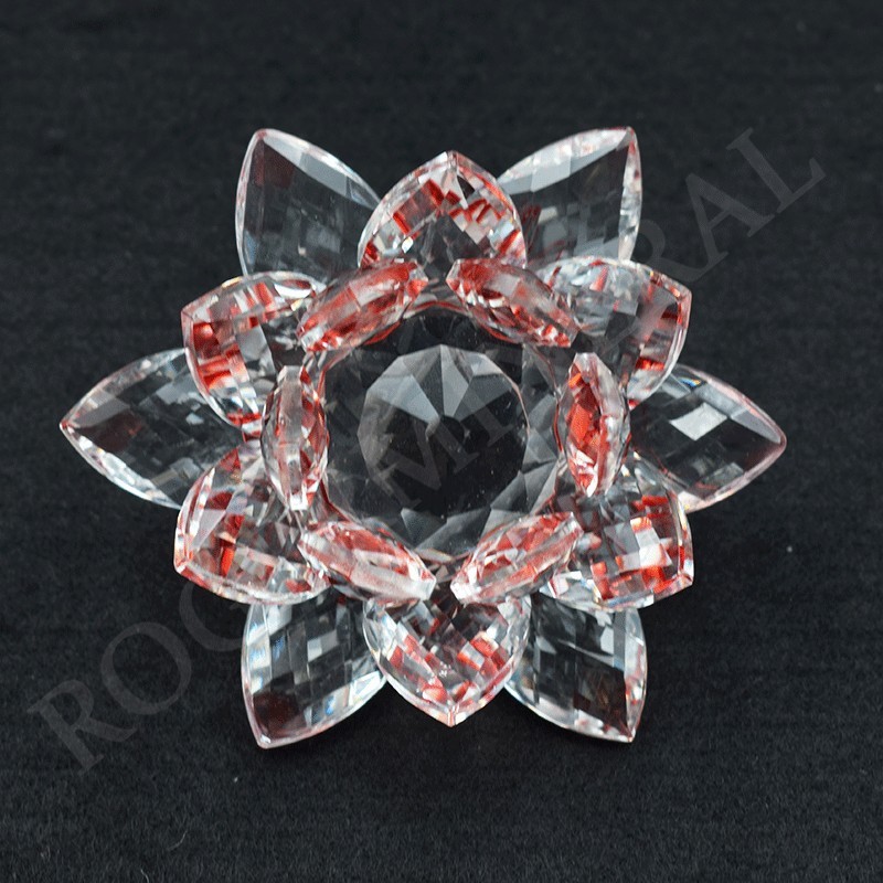 Lotus Feng-shui 3cm rouge, les tailles font référence au diamètre du coeur, hors pétales.
