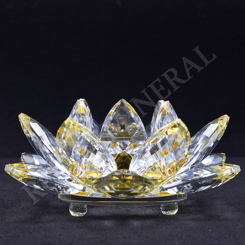 Lotus Feng-shui 8cm jaune, les tailles font référence au diamètre du coeur, hors pétales.
