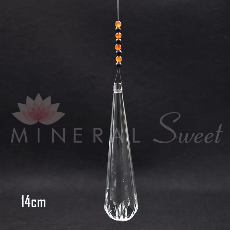 Pointe Feng-Shui facettées à bout rond de 14cm de long à suspendre agrémentée de perles de Shungite et de Cornaline