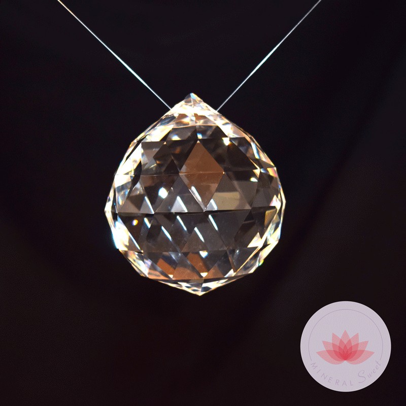 Boules Feng-Shui facetées à suspendre, disponible en différents diamètres. Cristal industriel