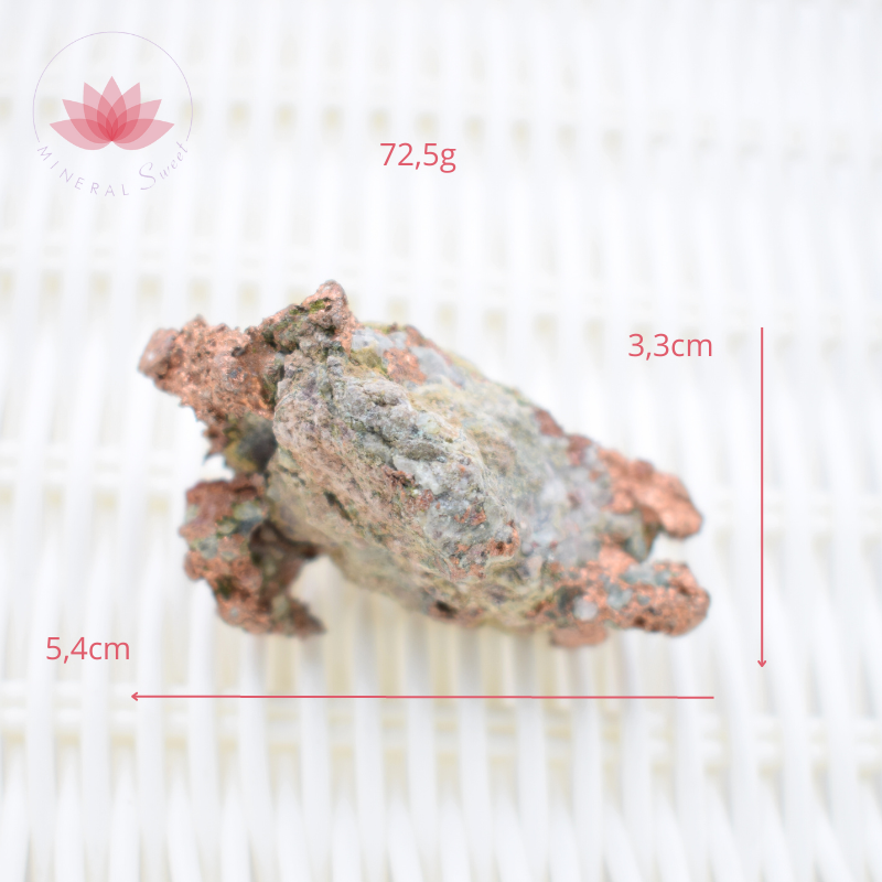 Le cuivre natif du fait de sa grande conductibilité, est aussi utilisé d’un point de vue éthérique et psychique, il favorisera donc circulation de l’énergie à travers les chakras jusque vers le haut.