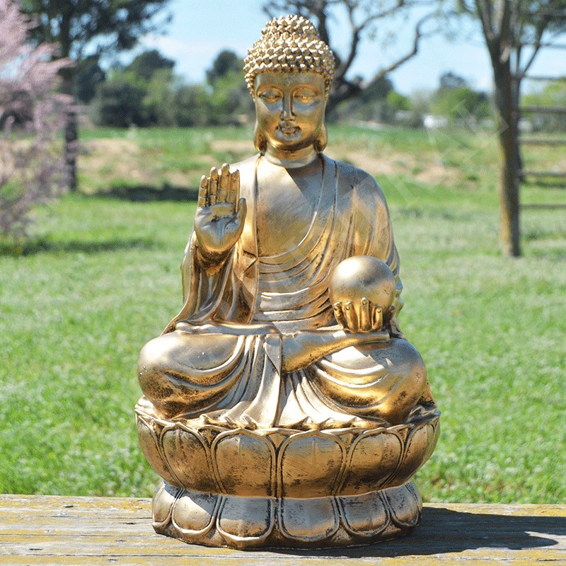Grande statue de Bouddha de la bénédiction, résine et couleur or