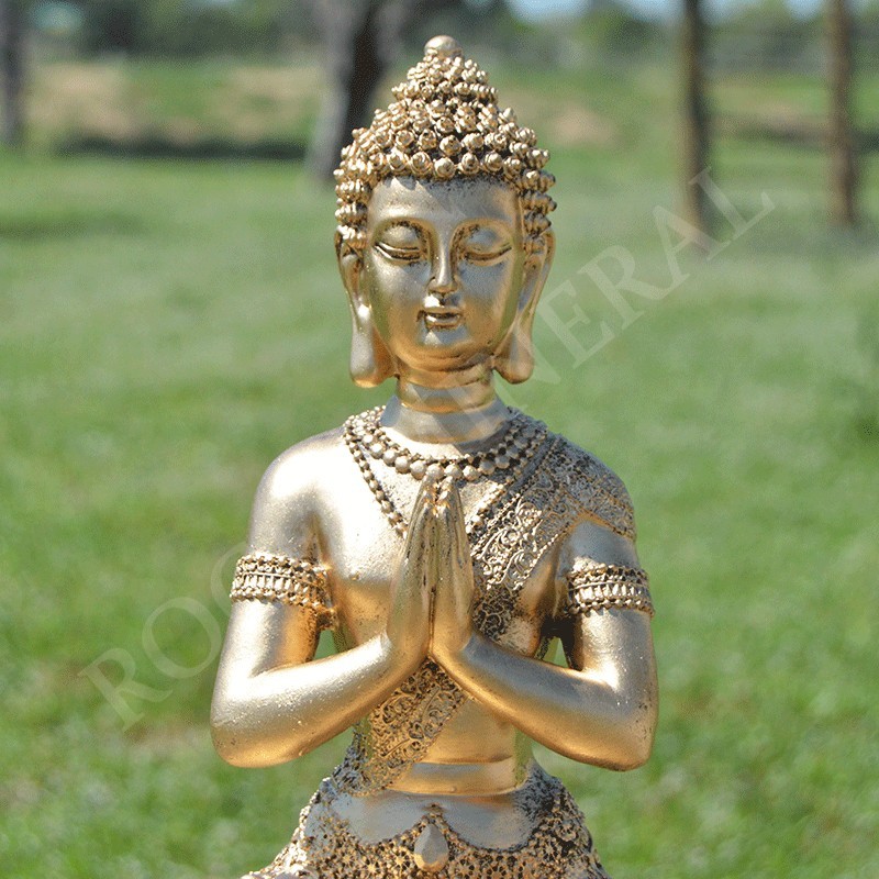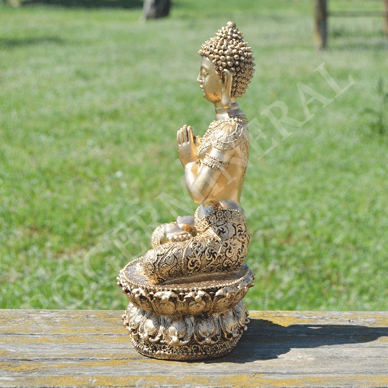 Bouddha de la prière méditative en résine couleur or