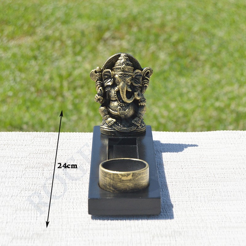 Dieu Ganesh en résine sur son socle avec support bougie et porte encens.