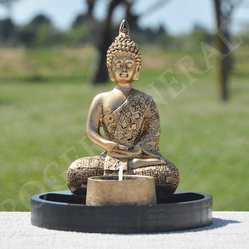 Statue de Bouddha en résine avec son support et un porte bougie