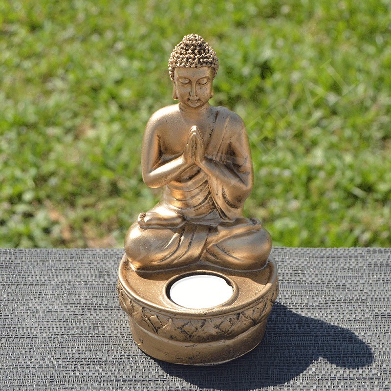 Bouddha de la prière en résine, couleur or