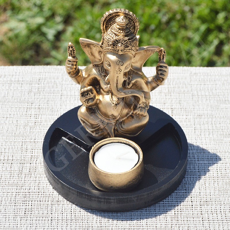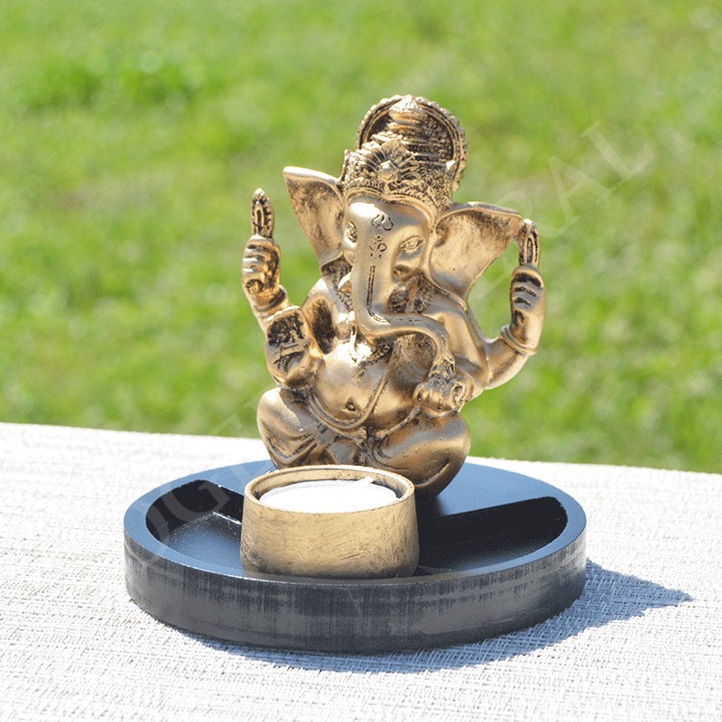 Ganesh en résine, or et porte bougie