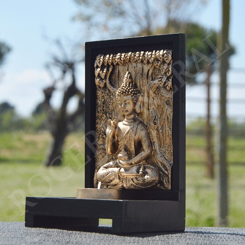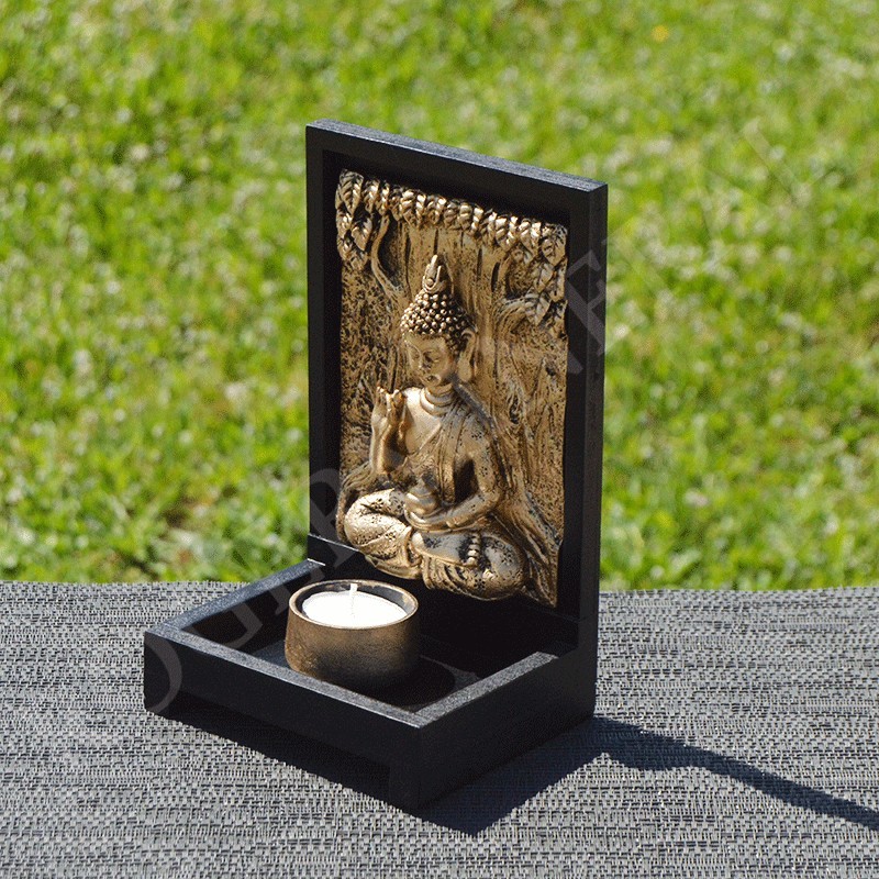 Élément de décoration en résine, Bouddha de la bénédiction et porte bougie