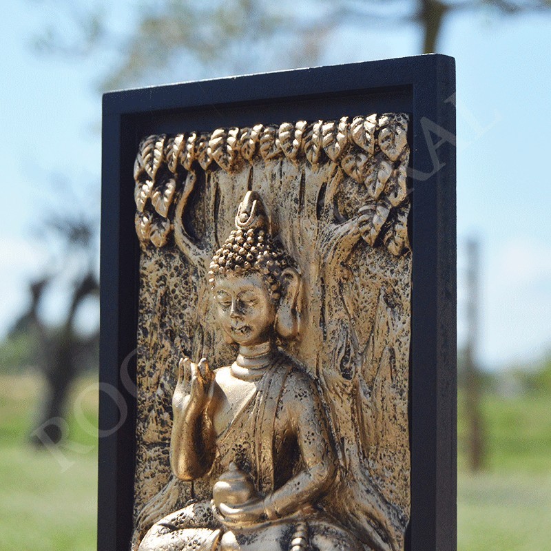 Tableau Bouddha de la bénédiction en résine et porte bougie