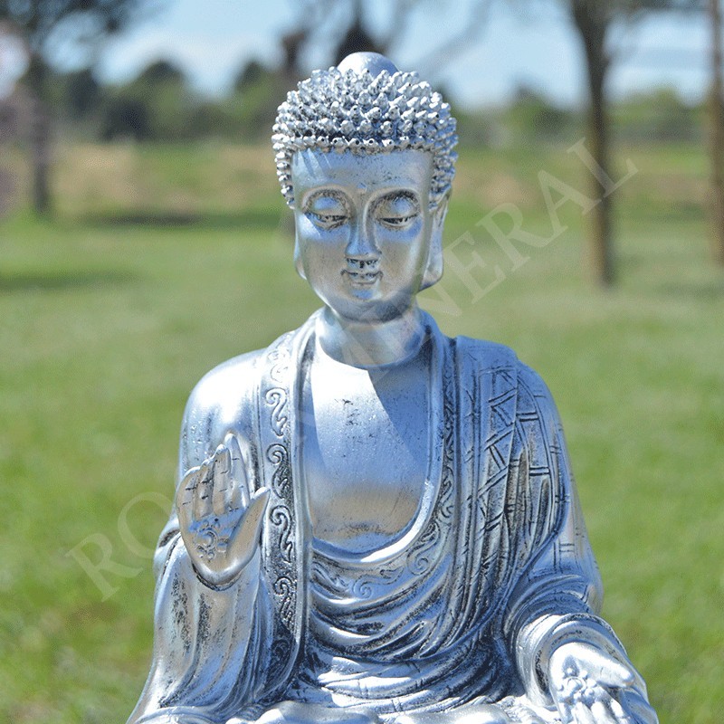 Belle statue de Bouddha en résine couleur argent