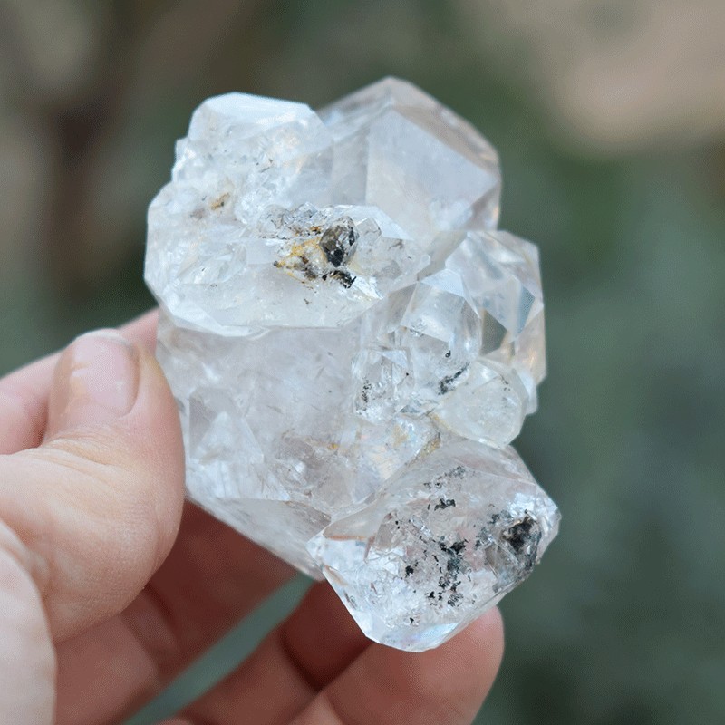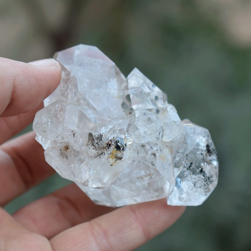 Il est appelé ainsi, diamant Herkimer, parce qu'il est dit de lui qu'il se rapproche énergétiquement du diamant. cela en fait une pierre d'harmonisation, une pierre de télépathie, du fait qu'il soit bi-terminé. il aiguise la créativité du fait de sa lumière, sa transparence.