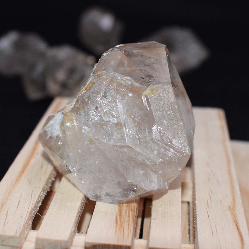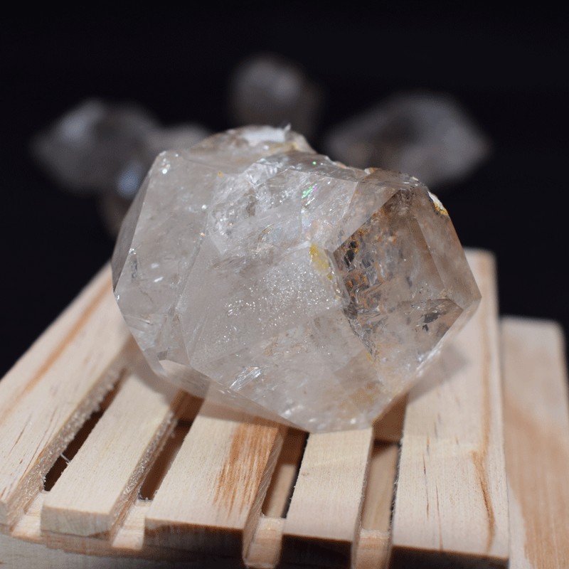 Le Diamant Herkimer est un cristal de roche petit et bi-terminé, sa composition est un dioxyde de silicium. Si O2.