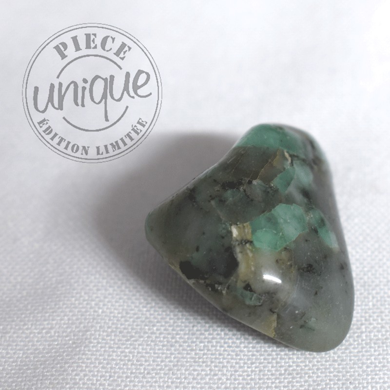Elle apporte la sagesse, la clarté sur l'ensemble des choses, aide à la clairvoyance et protège des mauvais sorts. L'émeraude est la pierre de sagesse favorisant la vérité et la justice.