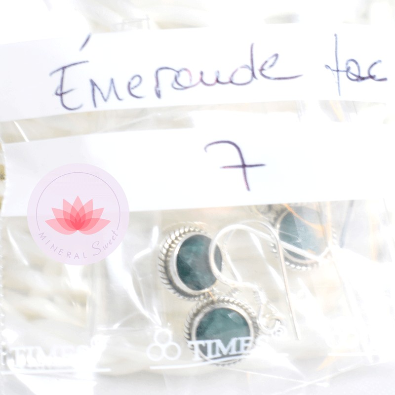 Boucle d'oreille Émeraude facettée serti argent 7