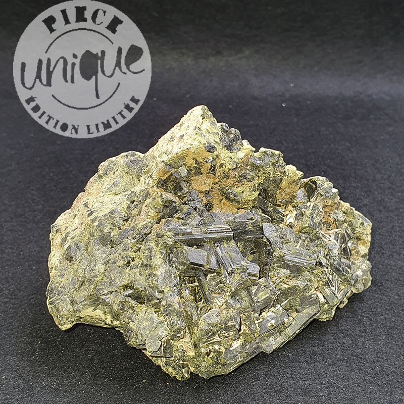 Épidote brute dans sa gangue avec de très beaux bâtons mais aussi une très belle microcristallisation