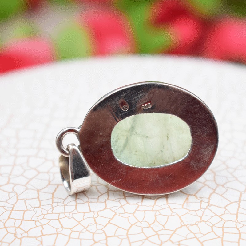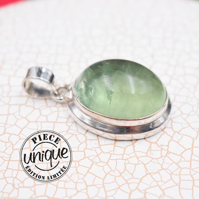 Pendentif Fluorite verte serti argent.