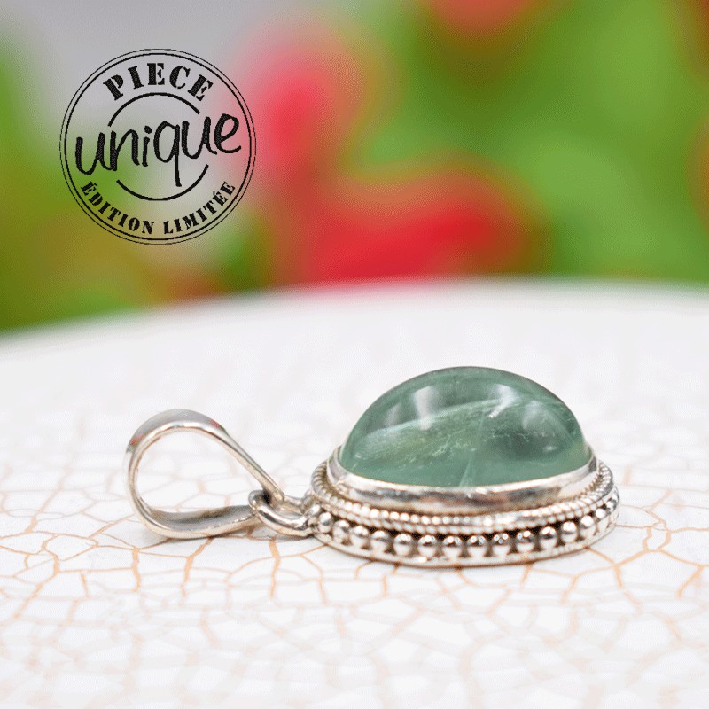 Pendentif Fluorite verte serti argent.