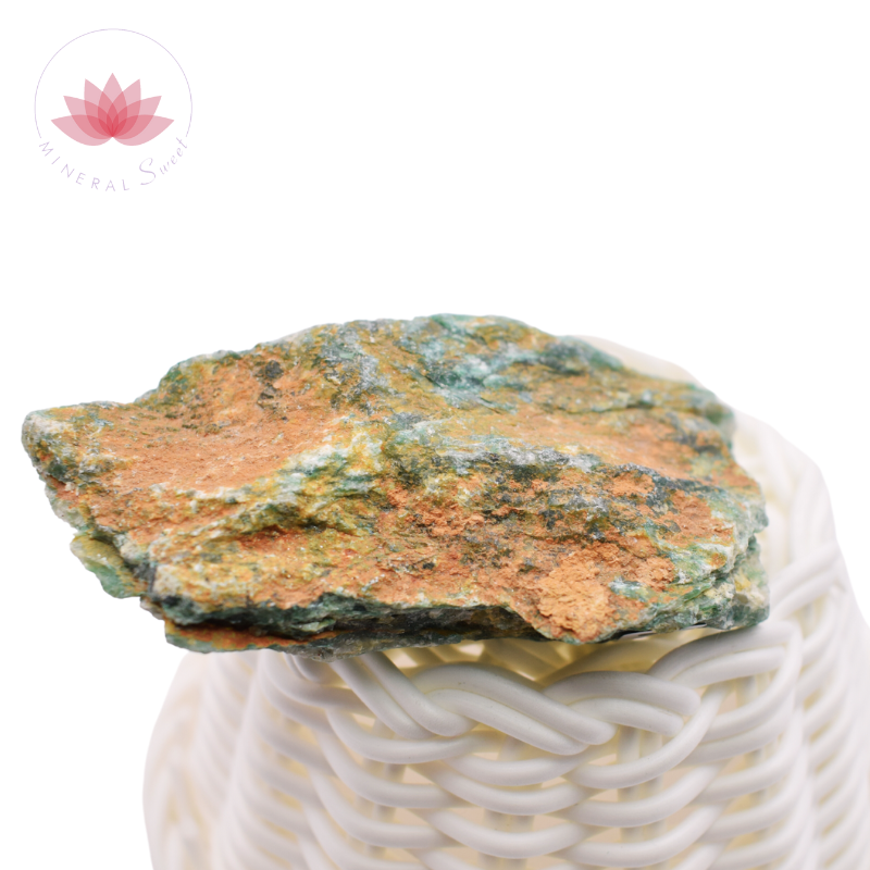 La Fuchsite est une variété de mica muscovite chromifère, vert. Une partie de l'aluminium est remplacée par du chrome… Sa couleur est verte. Sa composition chimique est : (K,Na)(Al,Cr,Fe)2(Si,Al)3O10(OH,F)3