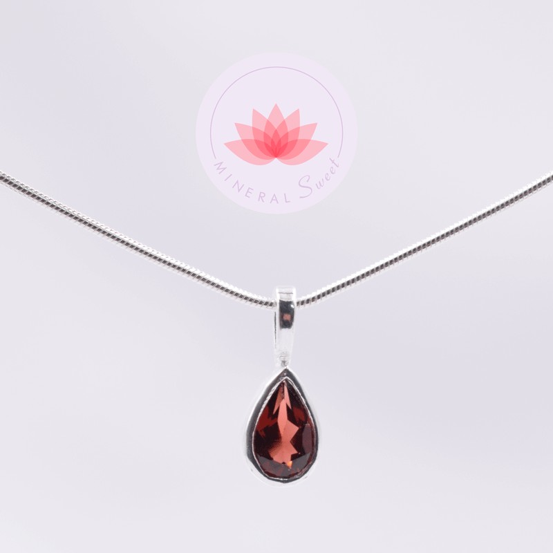 Ensemble pendentif mini Grenat larme plus chaîne argent 42cm