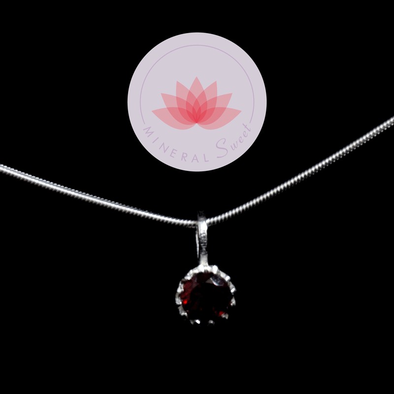 Ensemble pendentif Grenat mini rond plus chaîne argent 40cm