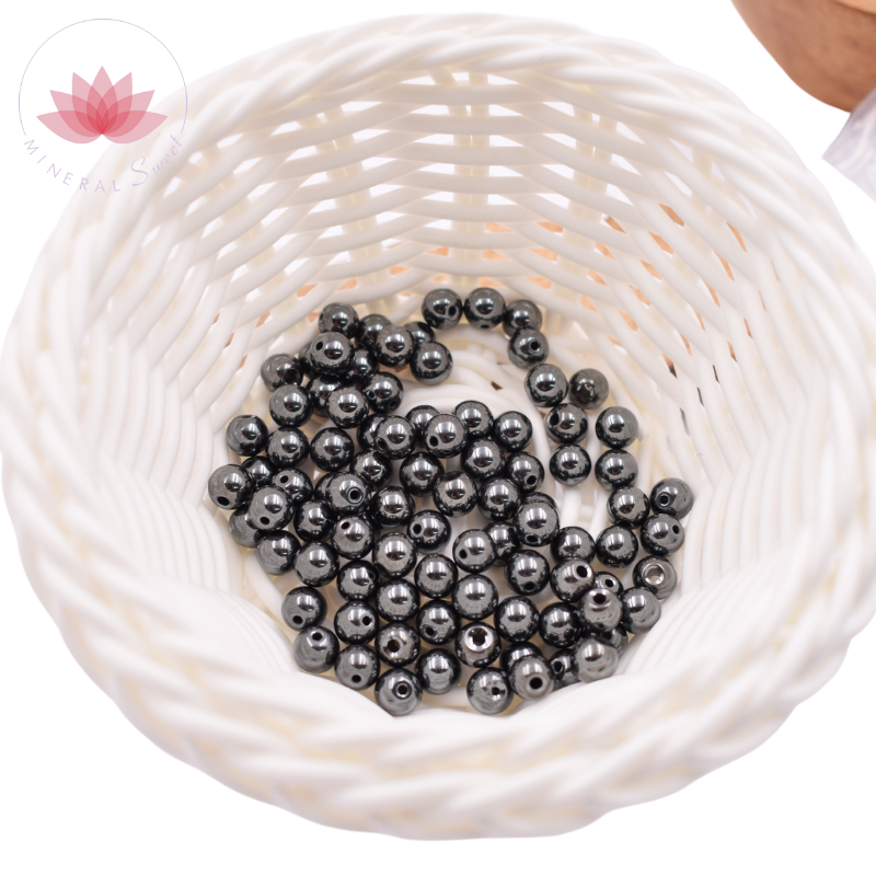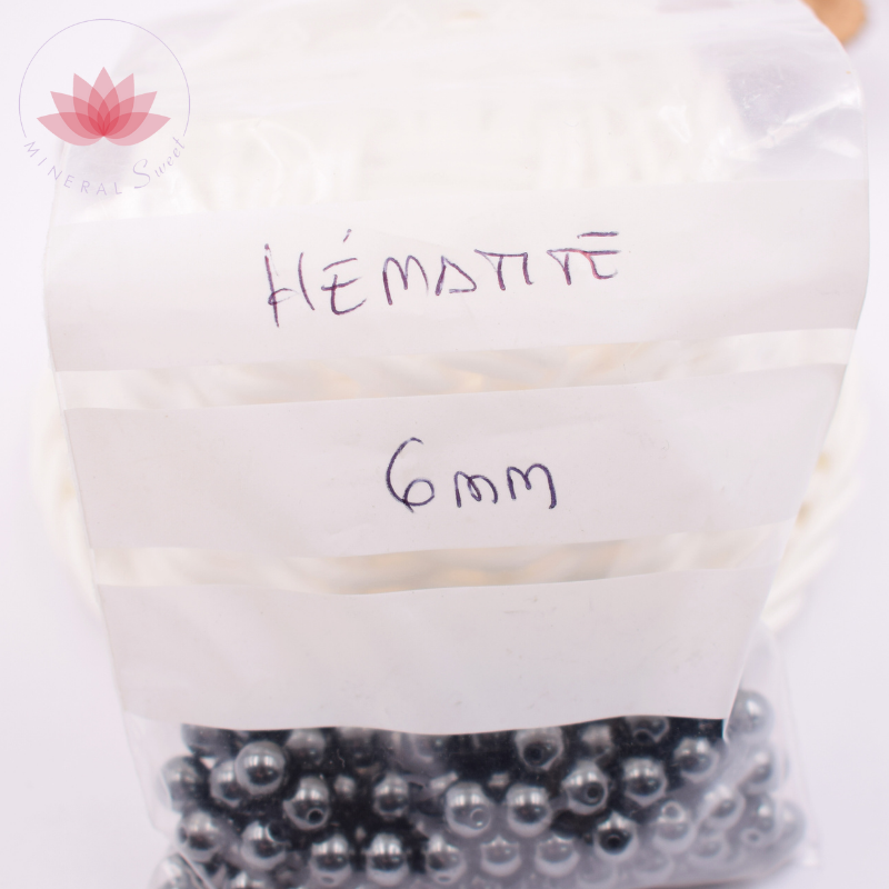 Nous vous proposons des perles rondes d'Hématite, diamètre 6mm.