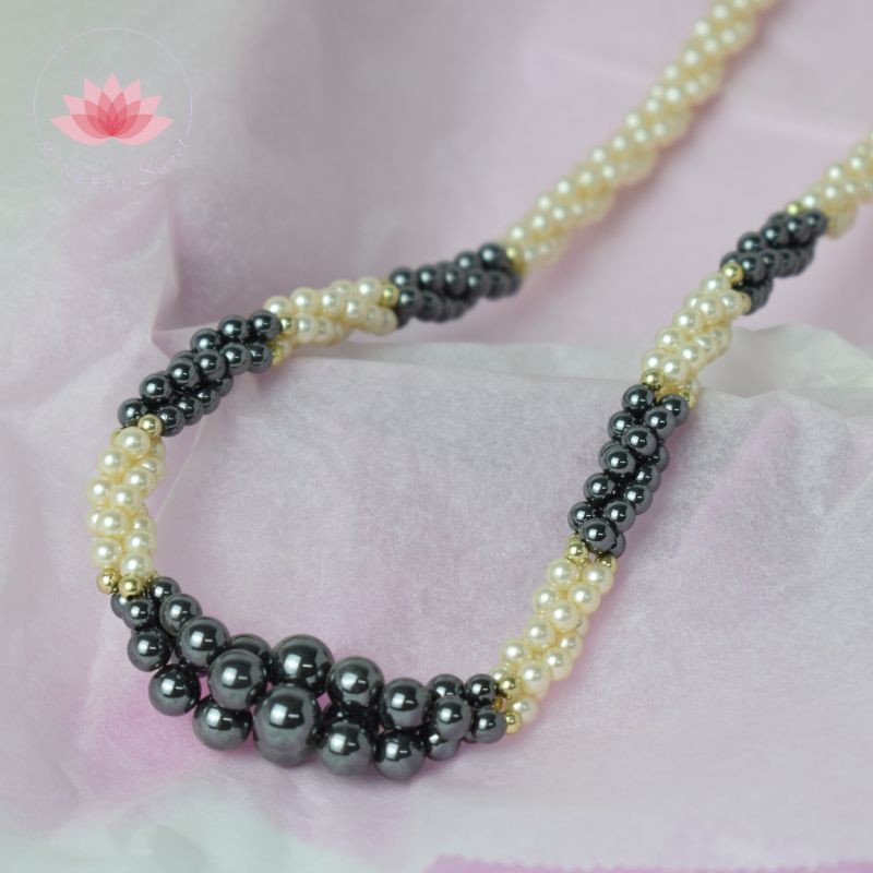 Collier en Hématite et perle d'eau douce.