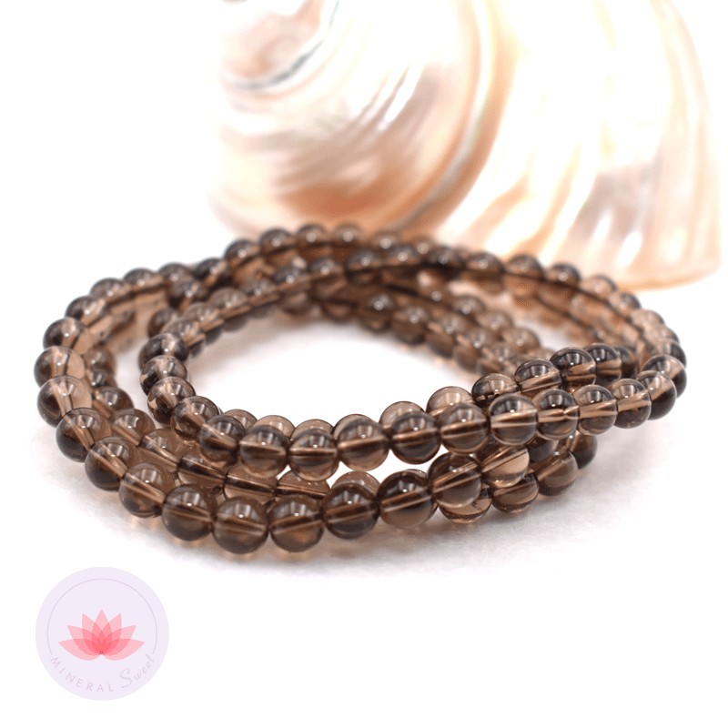 La couleur du Quartz fumé varie de gris fumé, brun clair à presque noir, Cette teinte particulière de ce quartz s'est formé lorsque les cristaux de quartz ont été exposés à la radioactivité naturelle pendant de très longues périodes, cela vient de l’irradiation des sels d'aluminium qu’ils contiennent à l'état de traces.