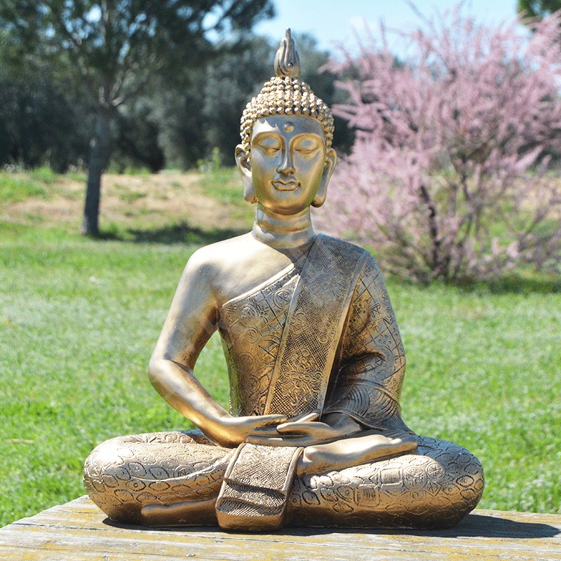 Grande statue de Bouddha de la méditation, résine couleur or